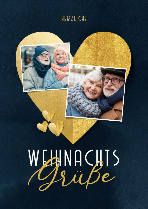 Weihnachtskarte mit Herz in Goldoptik (kein Golddruck) und Platz für mehrere eigene Fotos.