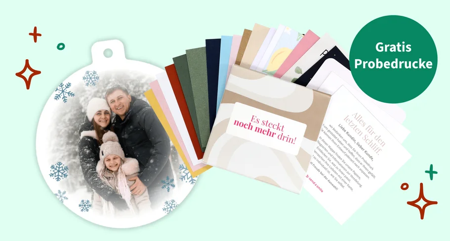 Bevor du deine Liebsten mit deinen Weihnachtsgrüßen zum Lachen bringst, solltest du natürlich auch selbst schmunzeln können. Bestelle bis zu 3 kostenlose Probedrucke deiner Karte.