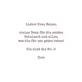 Auch in der Schule muss man sich irgendwann verabschieden. Ob es nun die Grundschule oder eine weiterführende Schule ist. Eine Dankeskarte für die Lehrerin der Grundschule oder aber eine Danksagung, die sich an die ganze Schule und alle Lehrer richtet – du entscheidest selbst, wie du deine persönliche Dankeskarte für die Schule gestalten möchtest. So kannst du beispielsweise auch eine Danksagung für Kollegen erstellen.