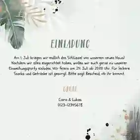 Bist du umgezogen oder hast eine gründliche Renovierung abgeschlossen? Dann lade deine Freunde und Familie zu einer Einweihungsfeier ein. Du kannst die Einladungen zur Einweihung selbst online in unserem Designtool gestalten. Darüber hinaus kannst du einen KOSTENLOSEN Probedruck zur Beurteilung der Qualität bestellen, bevor du eine Kartenauflage bestellst. So kannst du sicher gehen, dass die Karte genau deinen Wünschen und Vorstellungen entspricht.