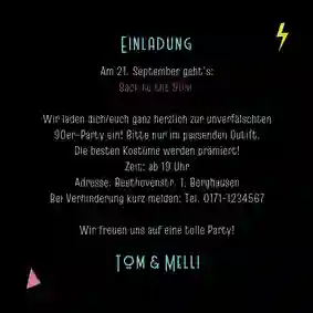 - Einladungstext: Schreib einen passenden Text, damit sich deine Gäste auf deine Party freuen. Gib an, wo die Party stattfinden wird und ab wann du deine Gäste begrüßen möchtest. Natürlich ist es auch wichtig, das Thema der Party mitzuteilen.