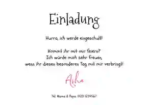 Dankeskarte Einschulung Rucksack pink & Fotos