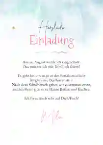 Menükarte zur Einschulungsfeier mit Meerjungfrau. Mit holografischem Glitzerdruck (wahlweise)!