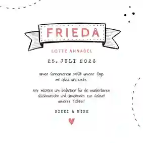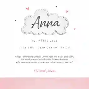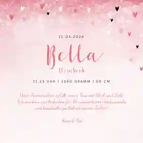 💕 Tipp: Freunde von euch haben auch eine Tochter bekommen? Überrascht sie mit einer persönlichen Glückwunschkarte zur Geburt für Mädchen.