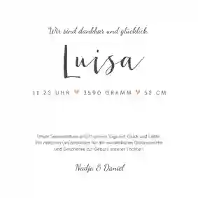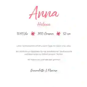 💕 Tipp: Freunde von euch haben auch eine Tochter bekommen? Überrascht sie mit einer persönlichen Glückwunschkarte zur Geburt für Mädchen.