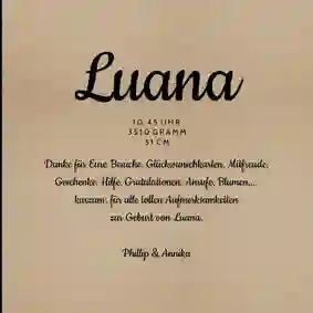 Danksagung zur Geburt von Mädchen