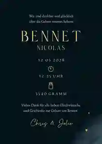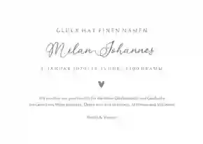Neben dem Namen, einem Foto und den Geburtsdaten eures Sohnes ist noch Platz für ein schönes Zitat zur Geburt? Dann wählt gerne einen dieser Sprüche oder lasst euch in unserem Blogartikel von noch mehr Zitaten für Jungen inspirieren.