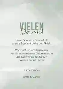 💙 Tipp: Möchtet ihr euch zur Geburt bei all euren Liebsten bedanken? Dann gestaltet jetzt individuelle Dankeskarten zur Geburt eines Jungen.