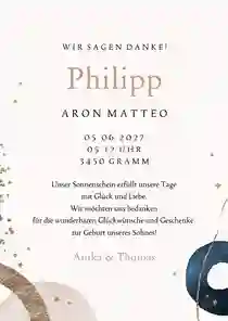 💙 Tipp: Möchtet ihr euch zur Geburt bei all euren Liebsten bedanken? Dann gestaltet jetzt individuelle Dankeskarten zur Geburt eines Jungen.