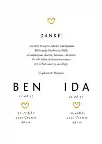 Natürlich! Neben Geburtskarten findest du bei uns auch passende Dankeskarten für Zwillinge, die du individuell gestalten und mit einem Foto oder persönlichen Dankestext versehen kannst.