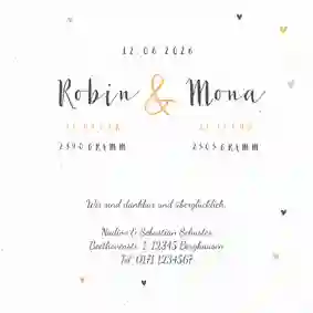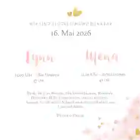 Auf eine Geburtskarte für Zwillinge gehören die Vornamen der Babys, das Geburtsdatum, Größe und Gewicht sowie ein liebevoller Begrüßungstext. Viele Eltern fügen außerdem ein Foto hinzu, um die Karte noch persönlicher zu gestalten.