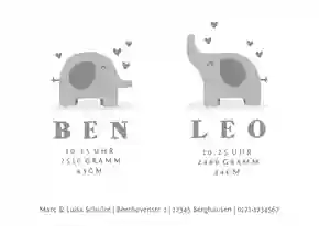 Ja. Bei Send a Smile findest du viele liebevoll gestaltete Vorlagen, die speziell auf Zwillinge abgestimmt sind – ob zwei Jungen, zwei Mädchen oder gemischt. Alle Designs lassen sich individuell mit eigenen Fotos & Texten gestalten.