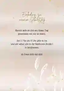 🎉 Tipp: Ein lustiger Einstiegstext oder ein kurzer Reim machen Ihre Einladungskarte zu etwas Besonderem. Lassen Sie sich ganz einfach von unseren Einladungstexten zum Geburtstag inspirieren! Oder wie wäre es mit einem netten Gedicht oder flotten Spruch?
