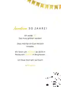 - Anlass: „Ich werde 30 und möchte mit euch feiern!“