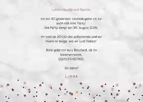 - Botschaft mit Persönlichkeit: Ein herzlicher oder humorvoller Text bleibt in Erinnerung und sorgt für gute Laune lange vor dem Partyabend.