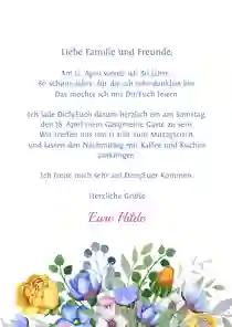 - Florale Motive: Sonnenblumen, Rosen oder stilvolle Blumendekore – ideal für eine fröhliche und festliche Einladung.