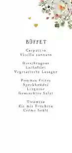 Klassische Geburtstagseinladung zur Teeparty mit Blumenkranz und Platz für ein eigenes Bild an der Innenseite. Veredelbar mit goldenem Foliendruck.