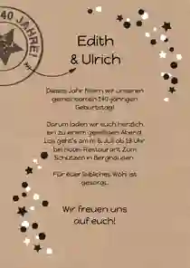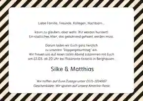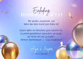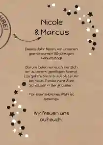 🎉 Tipp: Wirf auch einen Blick auf unsere Einladungskarten zum 50. Geburtstag oder die Einladungen zum 60. Geburtstag. Die Vorlagen lassen sich auch einfach und schnell zu einer Doppelgeburtstag Einladung umwandeln.