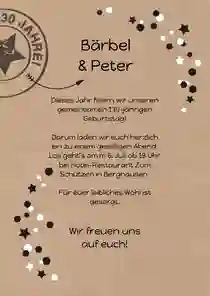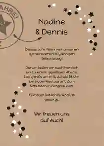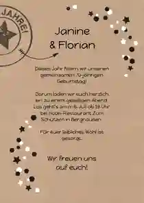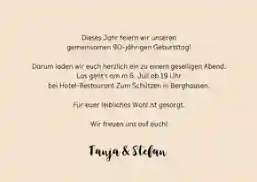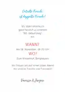 🎉 Tipp: Wirf auch einen Blick auf unsere Einladungskarten zum 50. Geburtstag oder die Einladungen zum 60. Geburtstag. Die Vorlagen lassen sich auch einfach und schnell zu einer Doppelgeburtstag Einladung umwandeln.