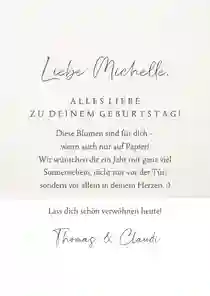- Liebe Grüße: Beende die Karte mit einer persönlichen Grußformel, wie „Deine [Name]“.