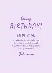 Ein Geburtstag verdient liebevolle Glückwünsche – und bei uns kannst du im Handumdrehen einzigartige Geburtstagskarten selbst gestalten. Denn eins steht fest: Eine persönliche Karte kommt immer gut an! Personalisiere jetzt deine Karte mit eigenen Texten und Fotos – ganz nach deinen Vorstellungen. Unser benutzerfreundliches Designtool macht’s möglich: Wähle eine unserer Vorlagen oder beginne mit einer leeren Blanko-Karte und lass deiner Kreativität freien Lauf!