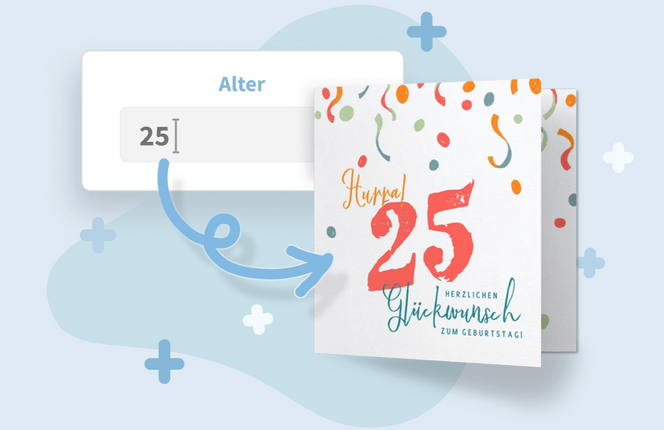 Suchst du eine Karte, auf der das Alter des Geburtstagskindes besonders hervorgehoben wird? Gib einfach das Alter ein, und wir zeigen dir, wie es auf verschiedenen Karten-Designs am besten zur Geltung kommt.