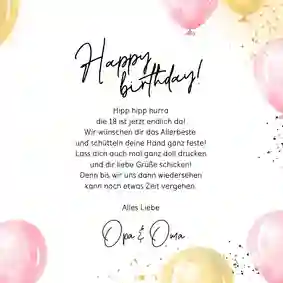 Die richtige Vorlage für deine Glückwunschkarte zum 18. Geburtstag