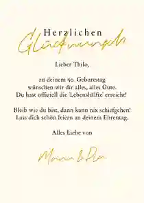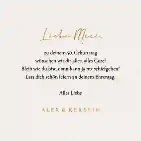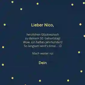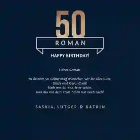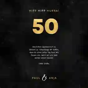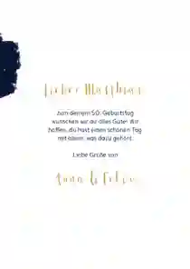 - Schreib deine persönlichen Glückwünsche zum 50. Geburtstag in die Karte.