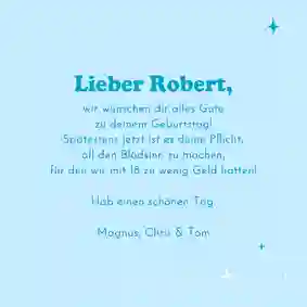 Autos, Whiskey und Bier. 🍻 Gezeichnet mit einer Portion Humor, verfeinert mit einer Prise Spaß und gefüttert mit ganz viel Heiterkeit. Und schon verzaubert die witzige Geburtstagskarte einen Mann. Lustig wird es, wenn du zum „hohen“ Alter gratulierst. Du weißt schon. 18 Jahre und so. 😉 Wühl dich gerne durch das Schlaraffenland an lustigen Geburtstagskarten für Männer.