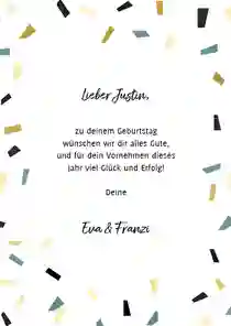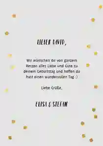 Selbstverständlich findest du in unserem Sortiment auch moderne, tiefgehende und herzerwärmende Vorlagen für deine Geburtstagskarte für Männer. Und du gestaltest diese genauso wie lustige Geburtstagskarten für Männer im Handumdrehen in unserem Designtool. Lass dann einfach die lustigen Fotos, Girlanden und die Partyhüte weg. Apropos Partyhut: 🥳