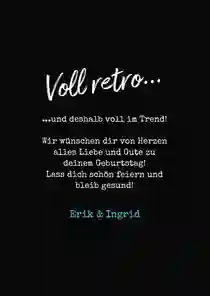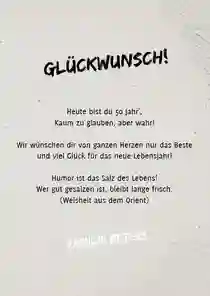 Hast du mit deinem Kumpel schon das eine oder andere Abenteuer erlebt? Dann schreib das in die Geburtstagskarte für Männer. Formuliere eure Erlebnisse und schon hast du den persönlichsten, lustigsten und coolsten Glückwunsch formuliert. Selbstverständlich geht das auch mit ernsten, tiefgehenden und herzzerreißenden Botschaften. Alternativ gratulierst du mit einem Songtext, einem Zitat oder einem Witz.