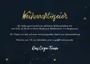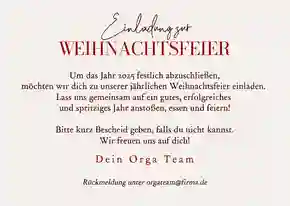 🎄 Tipp: Du möchtest deine Mitarbeiter zur Weihnachtsfeier einladen? Entdecke jetzt unsere individuellen Einladungskarten zur Weihnachtsfeier.