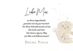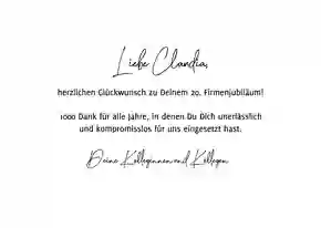 - Ein herzlicher Glückwunsch, ein persönlicher Spruch oder auch ein kurzes Zitat runden den Text auf der Karte perfekt ab.
