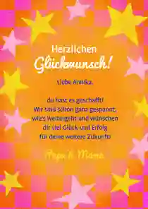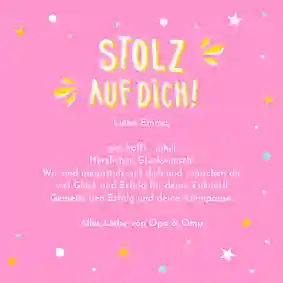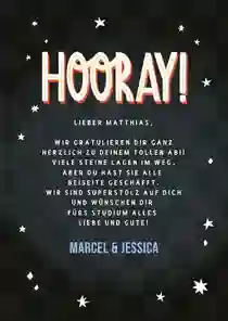 🏆 Tipp: Spielst du mit dem Gedanken, riesengroß zu überraschen? Dann verschicke eine XXL-Glückwunschkarte zum Abitur.