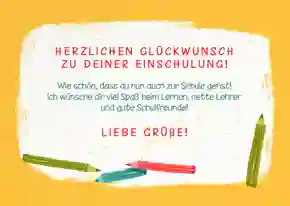 ✏️ Tipp: In unserem Artikel "Die schönsten Glückwünsche zur Einschulung" findest du viele weitere Mustertexte, Gedichte und Sprüche zur Einschulung, die du direkt auf deine Karte zum Schulanfang kopieren kannst.