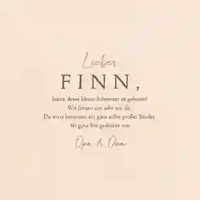 In Windeseile verwandelst du eine Vorlage in dein persönliches Meisterwerk. Zum Design für deine Karten zur Geburt eines Jungen passen noch bezaubernde Worte.