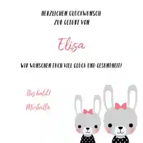 Eine Glückwunschkarte zur Geburt eines Mädchens kann in verschiedenen Stilrichtungen gestaltet werden. Ob schlicht, modern, verspielt oder mit niedlichen Tiermotiven, liebevollen Texten und Fotos des Sprösslings – bei uns gestaltest du deine Glückwunschkarte zur Geburt ganz nach deinen Vorstellungen.