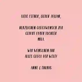 💕 Tipp: Du kannst deine Glückwünsche auch mit Zitaten, Sprüchen oder Gedichten schmücken. Viel mehr liebevolle Vorlagen findest du bei unseren Glückwünschen zur Geburt.