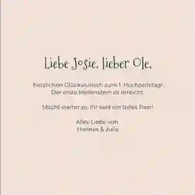 Mit den richtigen Worten verzaubern deine Glückwünsche zum Jubiläum die Herzen deiner Liebsten. Überlege dir, worüber sich das Jubelpaar am meisten freut. Ist es ein Gedicht? Ein weiser Spruch? Oder deine persönliche Geschichte? Vielleicht packst du mal wieder deinen Füller aus und schreibst deine Botschaft mit der Hand? Das Wichtigste ist, dass du dem Paar von Herzen gratulierst und ihnen auch für die Zukunft viele schöne gemeinsame Ehejahre wünschst.