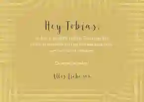 Das Gestalten einer Glückwunschkarte zum neuen Job erfordert nicht viel Talent oder Zeit. Wähle eine unserer Vorlagen, die unsere Designer extra für dich entworfen haben. Du kannst jede Vorlage nach Wunsch personalisieren. So kannst du wählen zwischen Karten mit und ohne Fotos, bunten oder schlichten Karten oder Karten, die perfekt zum neuen Job passen. Wie wäre es zum Beispiel mit einer Karte mit Tieren, wenn die Person einen neuen Job beim Tierarzt hat? Oder eine Karte mit Bürostuhl, Laptop, Stiften, Telefon und Co., wenn es sich um einen Bürojob handelt? Wenn du keine passende Vorlage findest, kannst du auch mit einer Blanko-Karte beginnen und dein ganz eigenes Design entwerfen. Füge eventuell eigene Fotos hinzu, passe die Texte an und schreib deine persönlichen Glückwünsche auf die Karte. Wünsche dem Empfänger beispielsweise viel Erfolg, viel Spaß und tolle Kollegen.