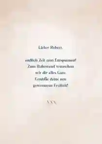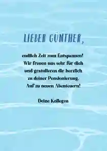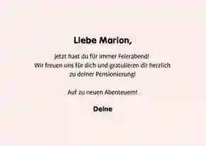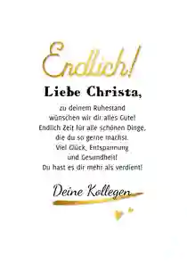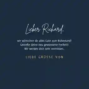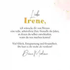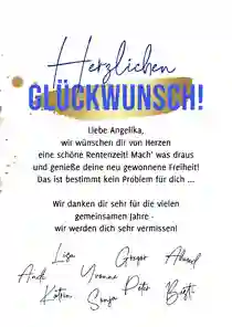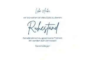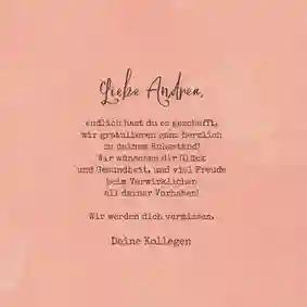 💌 Tipp: Du überbringst Glückwünsche vom gesamten Team und möchtest extra groß überraschen? Wähle dann eine XXL-Ruhestand-Glückwunschkarte (in DIN A4), sodass alle Kollegen persönlich auf der Karte unterschreiben können.