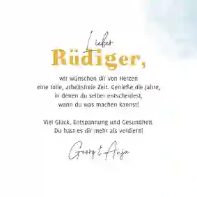 🎉 Tipp: Wirf auch einen Blick auf die Einladungskarten zum Renteneintritt. Denn die Karten lassen sich auch ganz einfach in eine Glückwunschkarte zur Rente verwandeln.