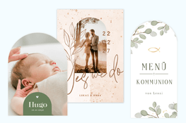 Stöbere durch unser Sortiment und wähle eine Karte für deinen Anlass. Ob persönliche Geburtstagskarte oder stilvolle Hochzeitskarte: Dein Design beginnt genau hier.