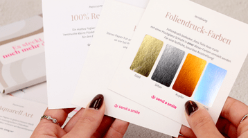 Ja, auch das ist möglich. Ohne Kundenaccount kostet dein Probedruck 0,49 €. Mit einem (gratis) Send a Smile Account sind deine ersten drei Probedrucke gratis und dein Kartenentwurf wird automatisch gespeichert.