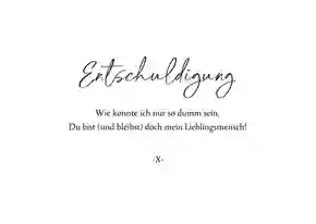 Wenn du deine Entschuldigungskarte doch lieber selbst, zum Beispiel gemeinsam mit einem Geschenk, überreichen möchtest, kannst du sie natürlich auch erst zu dir nach Hause liefern lassen. So kannst du auch noch eine persönliche Botschaft in die Karte schreiben.