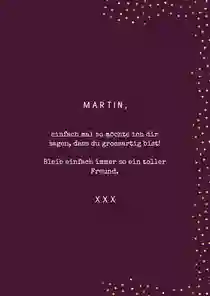 Es gibt unendlich viele Gründe, jemandem eine Karte zu schicken. Mit einer persönlichen Karte kannst du dich bei jemandem bedanken oder jemanden motivieren, der eine schwere Zeit durchmacht. Hat deine Freundin Geburtstag oder ist sie frisch verheiratet? Schick ihr dann eine schöne Glückwunschkarte! Es muss aber nicht immer einen Anlass geben, denn es ist immer toll, eine Karte zu bekommen! Überrasch deinen Freund oder deine Freundin mit einer schönen Freundschaftskarte und schreib ein paar Worte, die von Herzen kommen. Er oder sie wird sich bestimmt freuen und die Karte als Erinnerung aufheben!