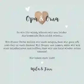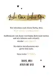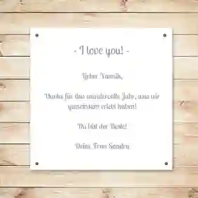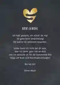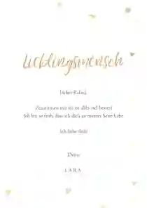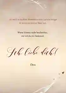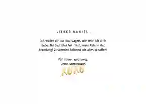 Findest du es schön, die Karte persönlich zu überreichen oder zusammen mit einem Geschenk zu verschenken? Dann wähl die Versandoption „Zu Hause empfangen“. Wir verpacken deine Karte inklusiv Umschlag in einem Kartonumschlag und versenden das Ganze zu dir nach Hause. Du kannst die Karte zur Liebe selbst noch unterschreiben und persönlich überreichen.