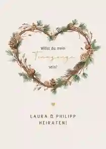 Einladung Winter Hochzeit Herz mit Tannenzweigen