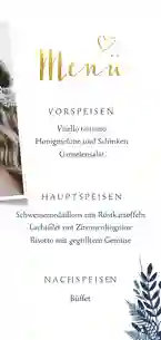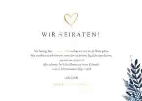 Einladung zur Hochzeit dunkelblau mit Foto und Pflanzen