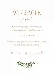Hochzeitseinladung mit Foto, Zweig und eleganter Schrift auf Hintergrund in Kraftpapierlook. Kartenvorlage ganz nach Geschmack bearbeiten!